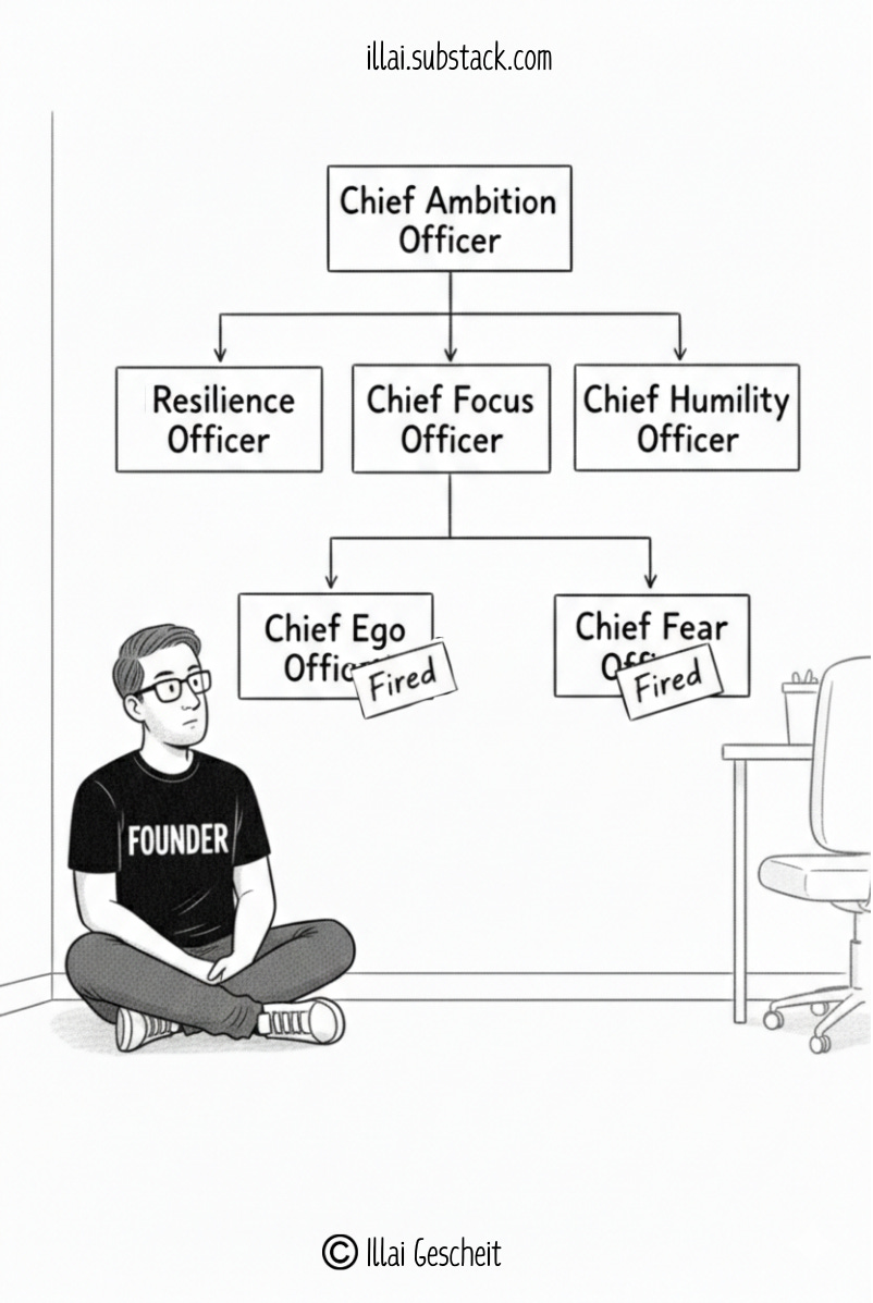 My mental model states that in each situation you face as a leader, entrepreneurs and founder you lead a team of characteristics in your head. You need to understand the current default situation and how you tend to operate. Which characteristic leads the situation? is it your 'Chief Ego Officer'? your ‘Chief Ambition Officer'? then who else on the trait team is involved.